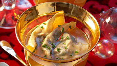 Les disposer dans une assiette à soupe et servir avec le bouillon d’agneau.